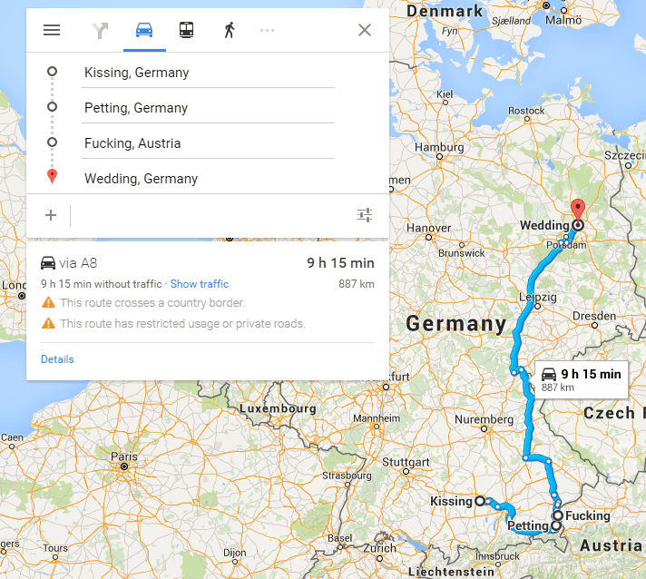 Ich fahre gerade durch 'Ebnat'. Kein Witz. Ort heißt wirklich so.