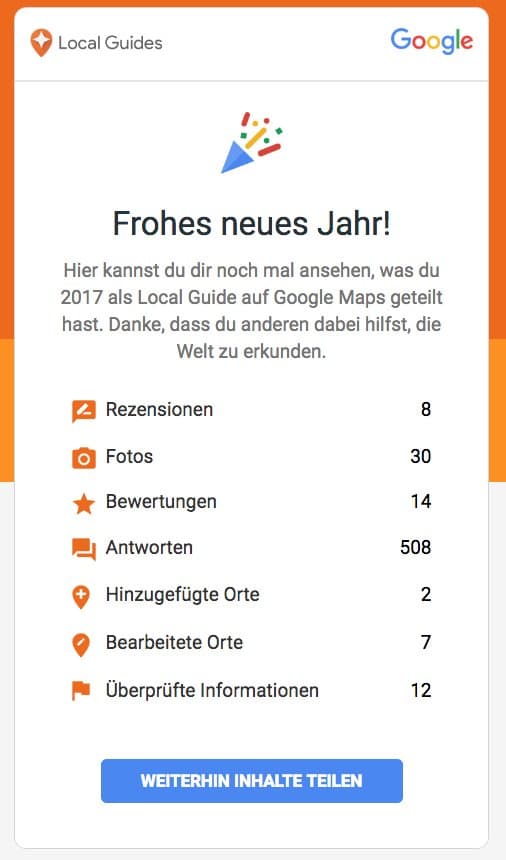 Meine #GoogleMaps Local Guide Statistik für 2017.