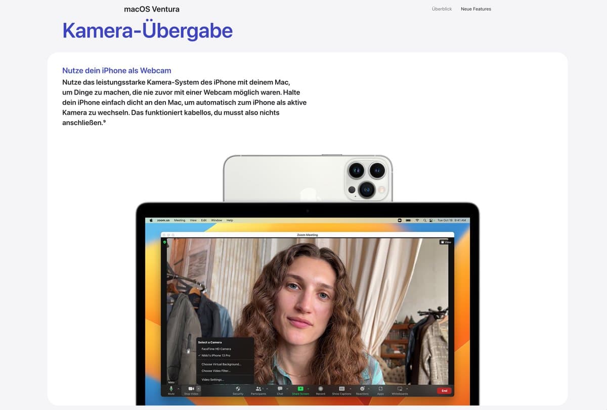 Kamera-Übergabe in macOS Ventura ist erst ab iPhone XR und neuer verfügbar. Schade, dass nicht auch noch älteren Geräte unterstützt werden.
