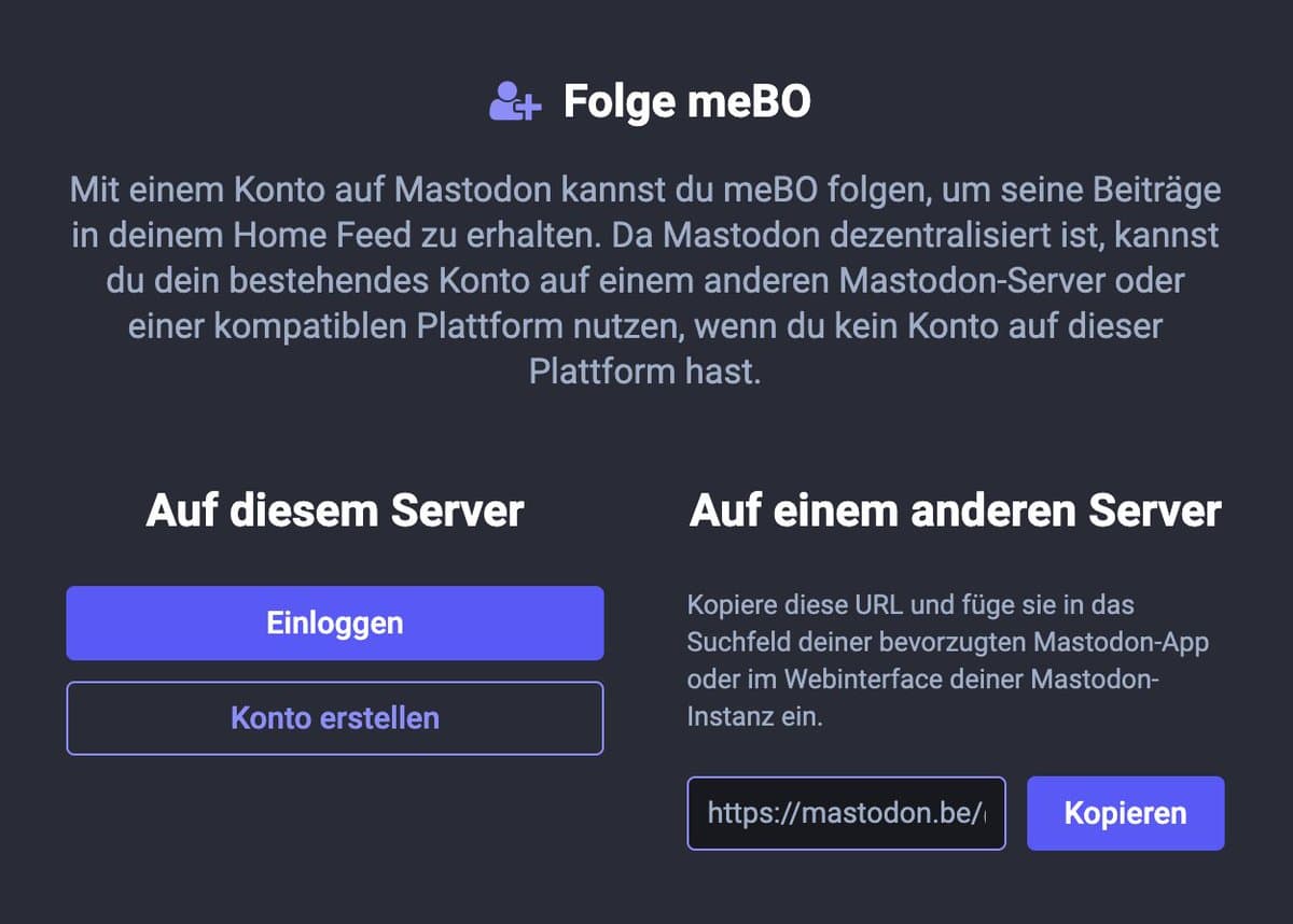 Ja, im Web hat das geklappt. Habe die URL unten rechts kopiert und in "meiner" Instanz eingefügt. Dann konnte ich meBO darüber folgen.